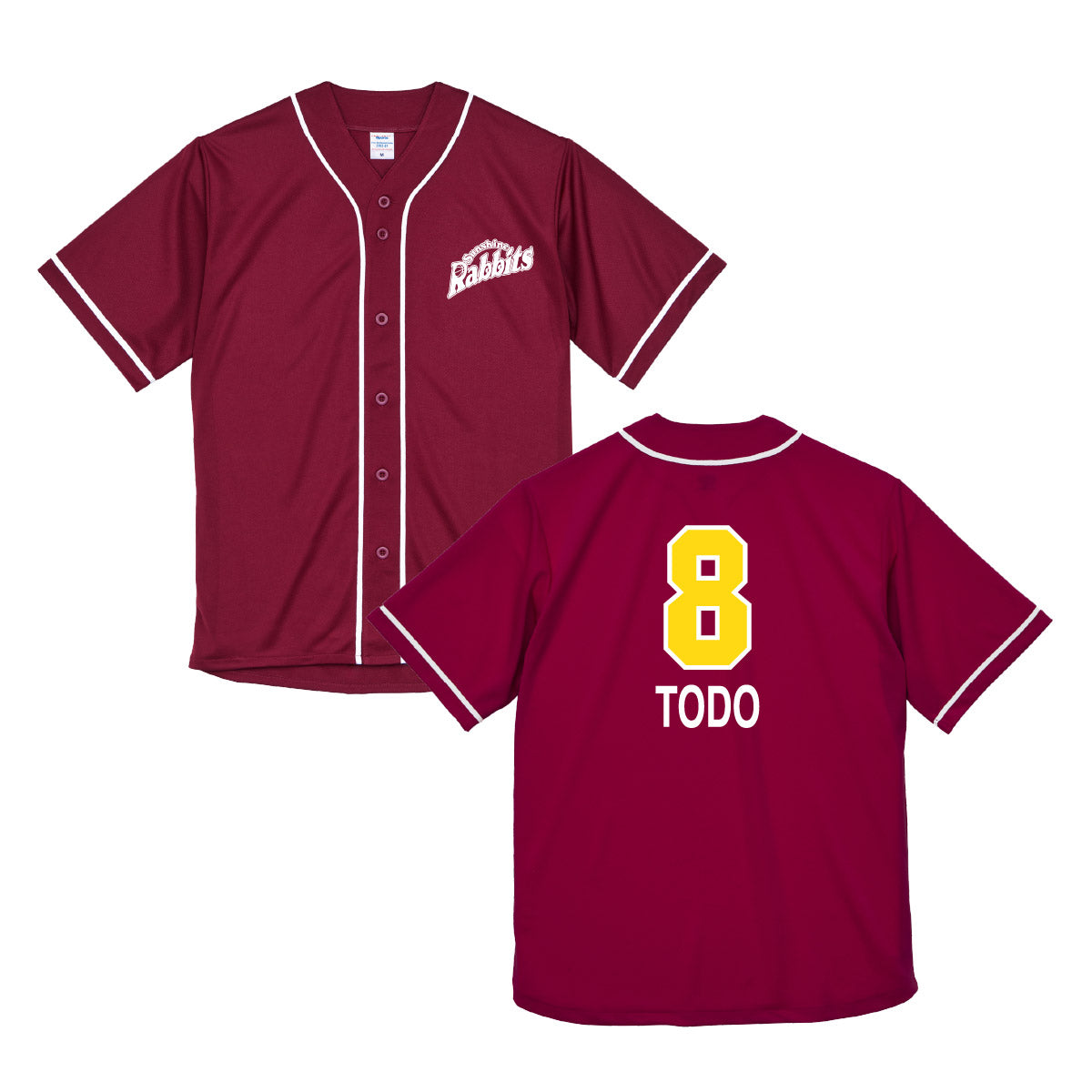 サンシャインラビッツオリジナルデザインのベースボールシャツです。背中に番号とNAMEが入っており、推しの応援にも気合いが入ること間違いなしの一着です。